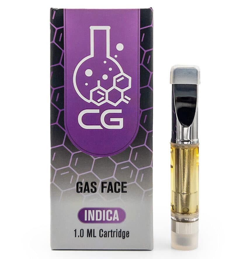 CG Extracts – Premium Cartridge – Gas Face – 1ML – An indica-dominant strain (70% indica/30% sativa) known for its powerful effects and complex flavour profile. This strain delivers a potent combination of uplifting mental stimulation and deep physical relaxation, making it a popular choice among cannabis enthusiasts. Its flavour is a unique mix of sweet and savoury notes, featuring fresh fruits, sour citrus, sharp mint, and a nutty, herbal cheese undertone. The aroma complements this with layers of spicy diesel and peppery skunk, creating a rich sensory experience.